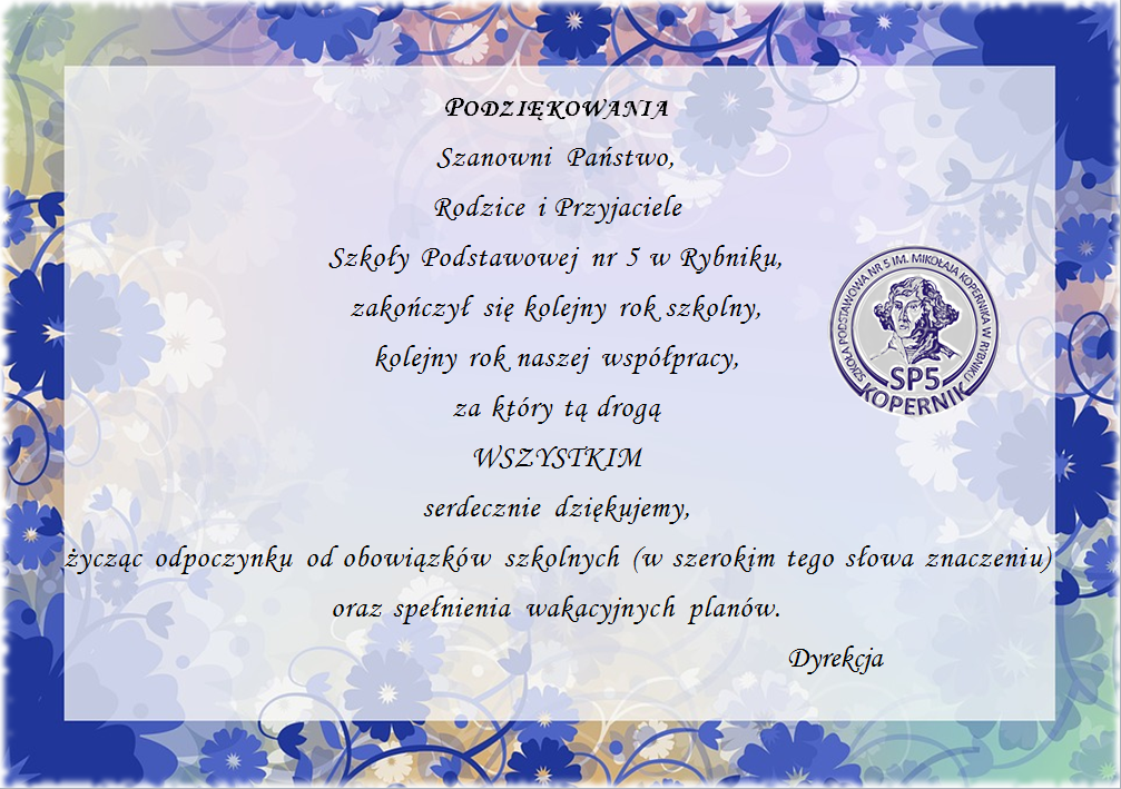 Z okazji Dnia Edukacji Narodowej wszystkim nauczycielom i pracownikom Zespołu Szkolno - Przedszkolnego nr 5 w Rybniku najlepsze życzenia składa