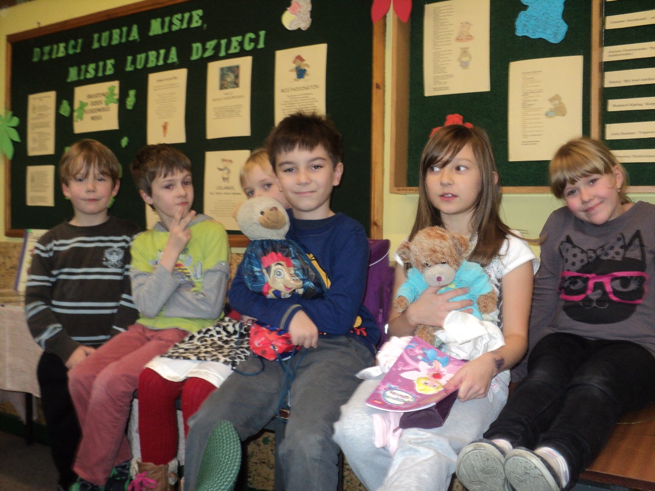 W bibliotece w czasie imprezy czytelniczej pierwszaki wraz ze swoimi misiami-przytulankami świętowały Światowy Dzień Pluszowego Misia. Dzieci przy dźwiękach „misiowych” piosenek rozwiązywały zagadki i układały puzzle. Z zainteresowaniem wysłuchały czytanej bajki Misia Uszatka i obejrzały film o Misiu Paddingtonie. Na zakończenie zostały poczęstowane słodkim „małym co-nieco”.